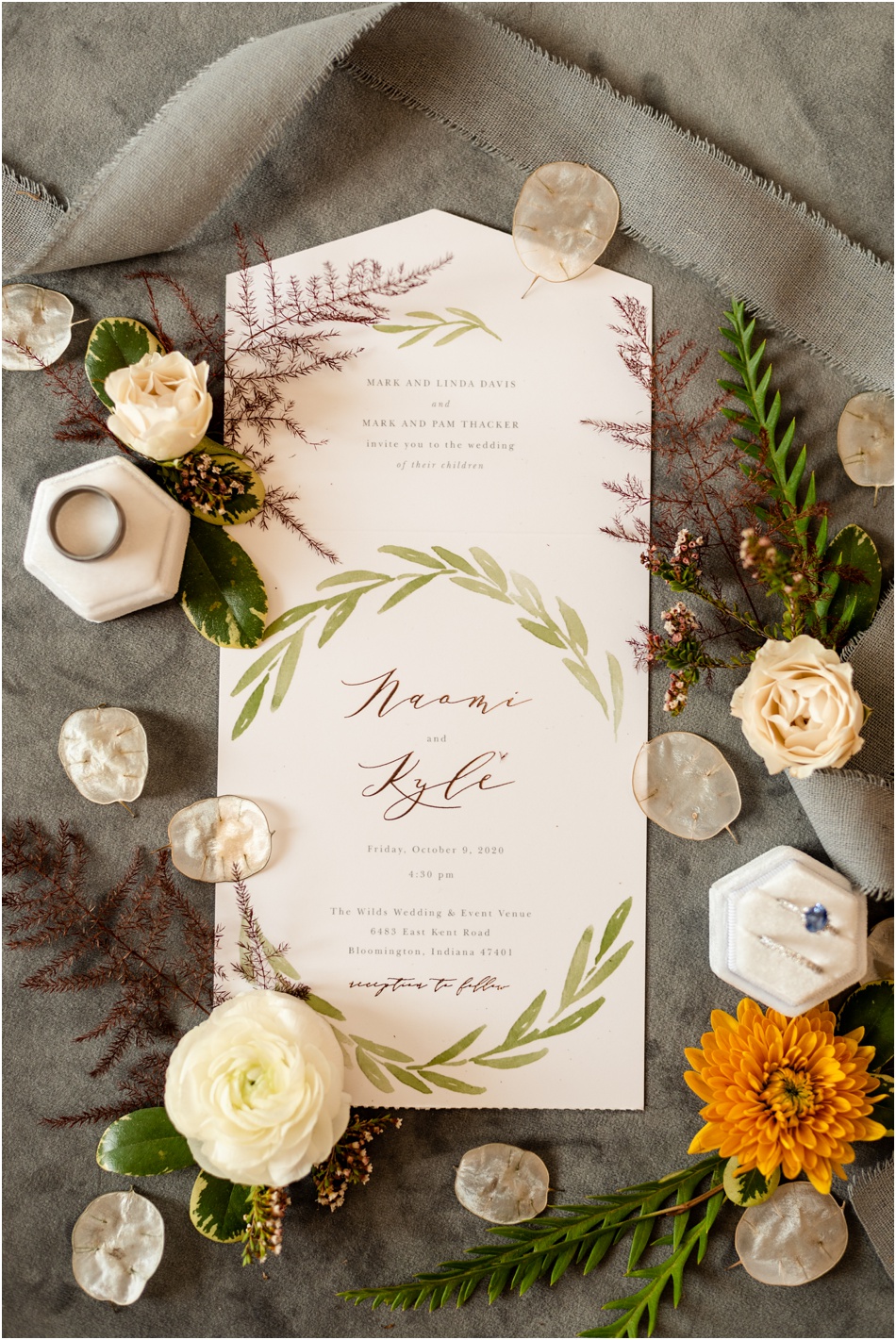 It was truly the perfect fall day for Kyle & Naomi's wedding at The Wilds, in Bloomington Indiana. This adventure loving couple planned the day perfectly down to every last thoughtful detail. From the changing colors of the autumn leaves, to the groom's reaction as the bride walked down the aisle....I can't even begin to pick my favorite moments from this amazing day.